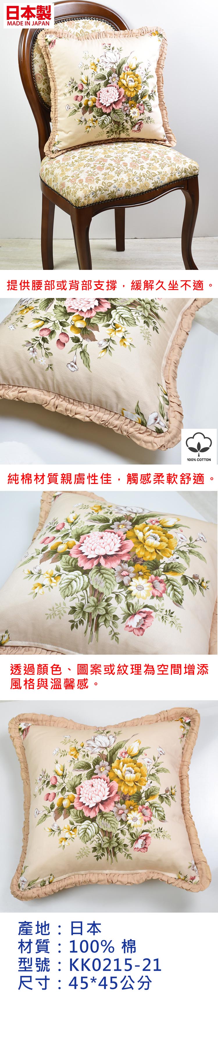 日本製椅靠墊KK0215-21 45*45公分(含棉芯)