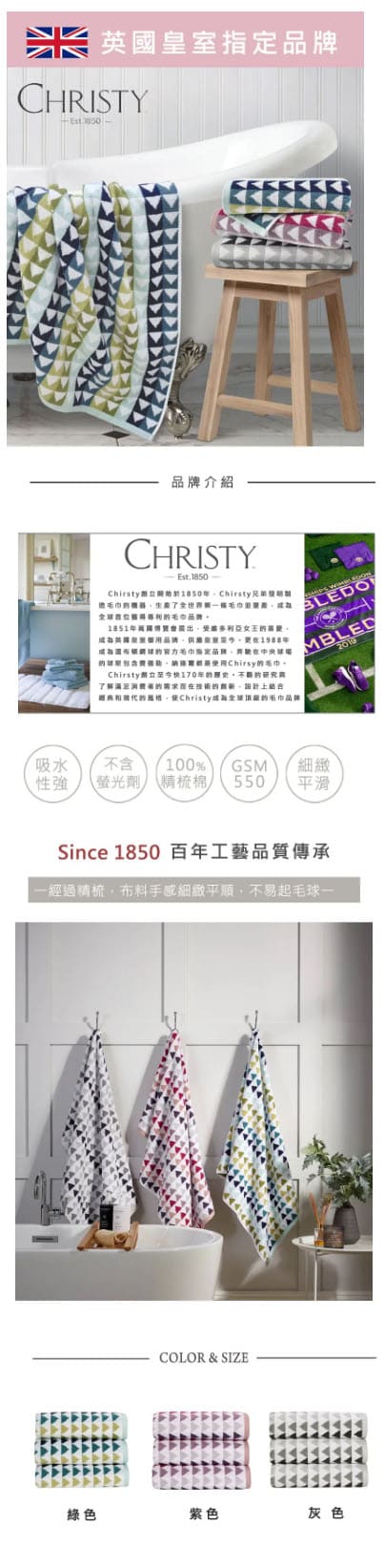 特點:採用巧妙的三角形風格條紋,將為您的浴室營造出設計感。