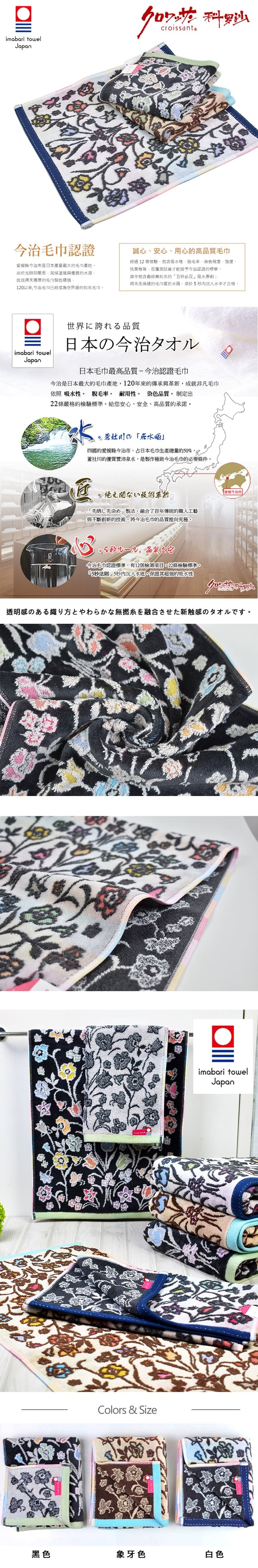 毛巾採雙面設計,一面以淡色基底襯托鮮豔花朵,另一面則以深色背景呈現反差之美。