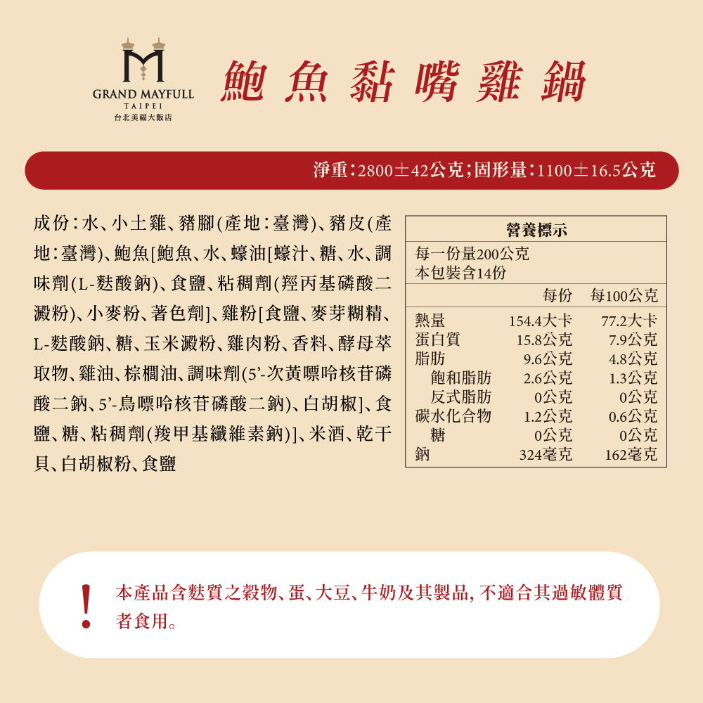 Pre Order台北美福大飯店 鮑魚黏嘴雞湯