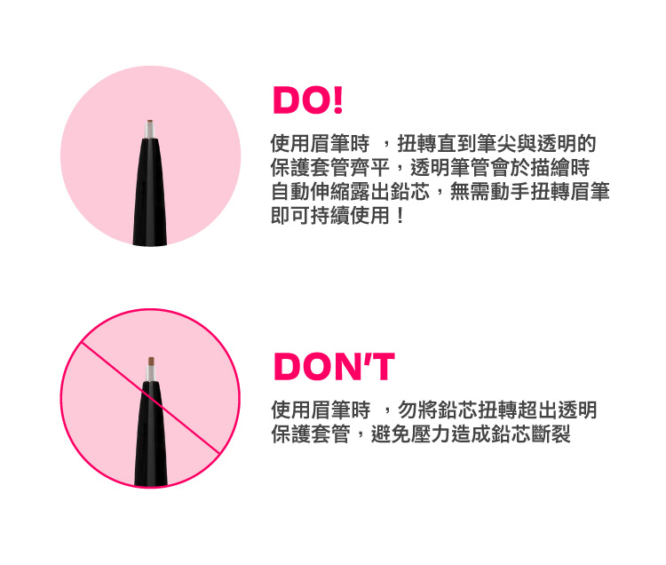 ☆*第一次使用無須旋轉全部用量,僅需旋轉0.1~0.2公分露出筆芯即可輕鬆使用