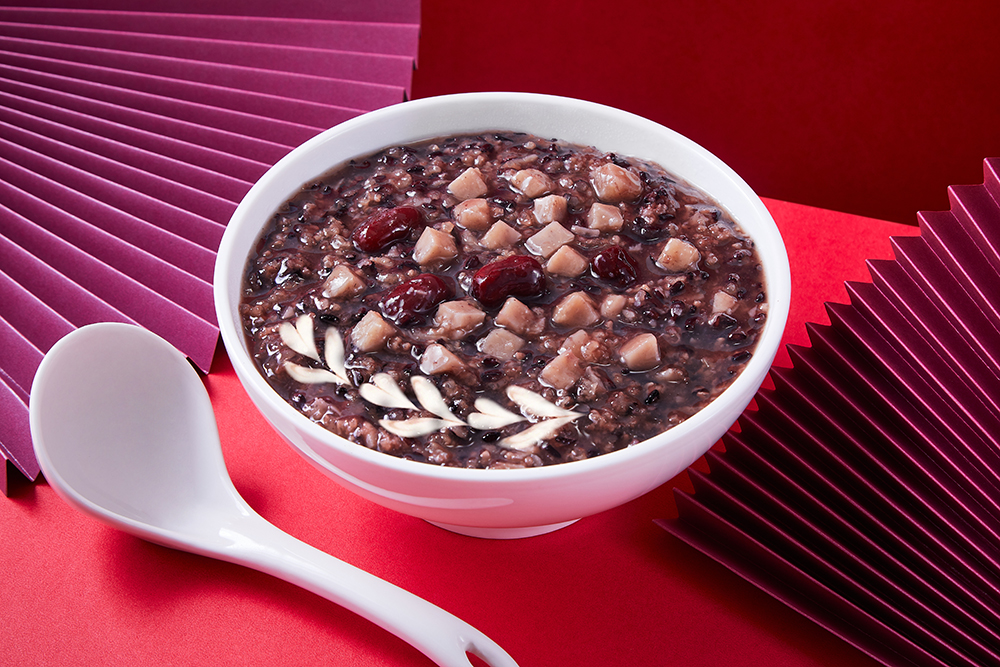 選用特級紫米與大甲芋頭丁等食材,經古法炒製焦糖熬煮,香甜不膩,與椰漿交融出柔順絲滑的口感,是依到溫潤暖心的飯後甜點。