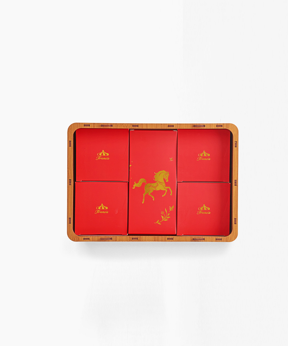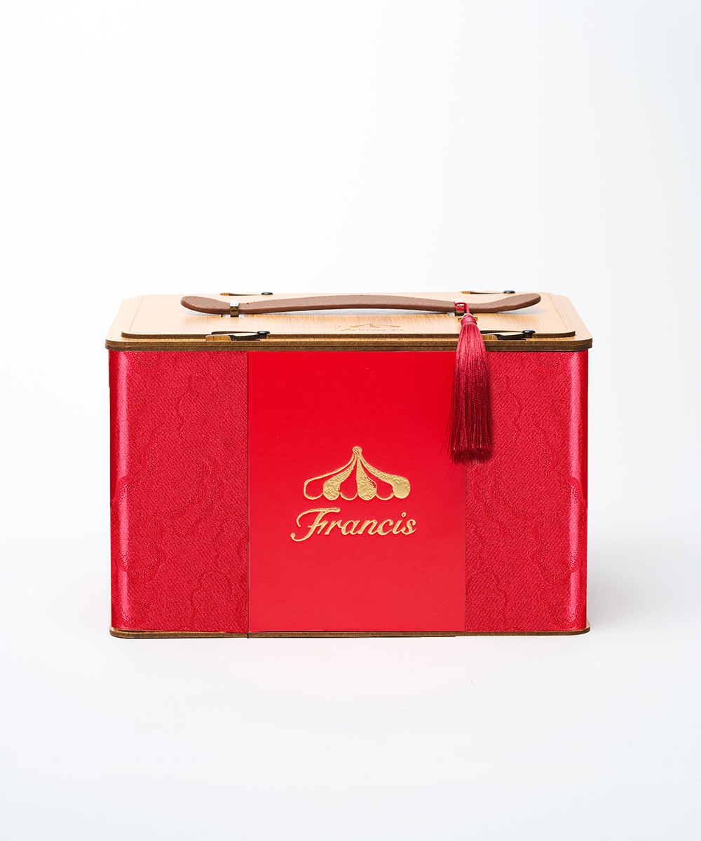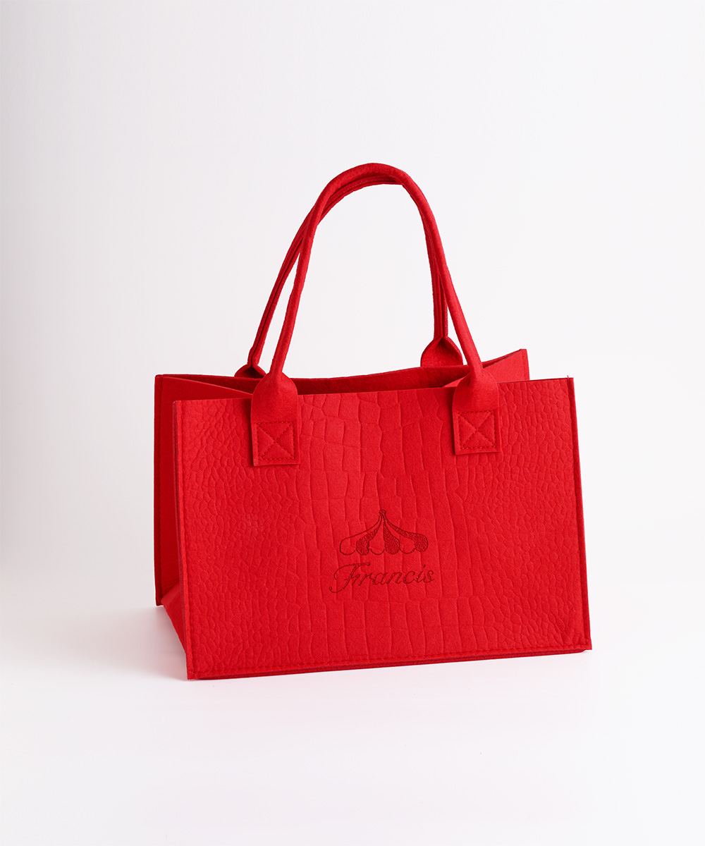✦ 百寶盒搭配提袋為訂製皮革紋路毛氈布手提袋,為奢藏的點心、禮盒更加提升送禮質感。