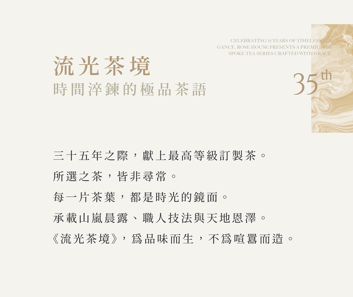 嚴選來自世界四大名茶產區的珍稀品項,並以「流轉時光中的茶魂」為題,構築一場專屬於品味者的感官盛宴。