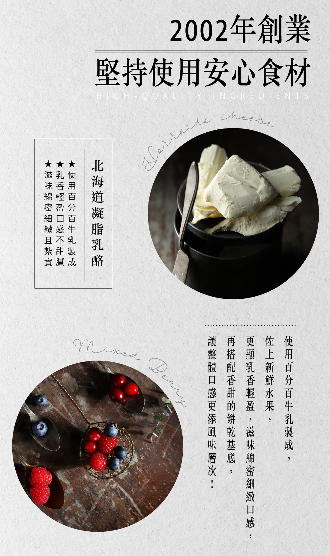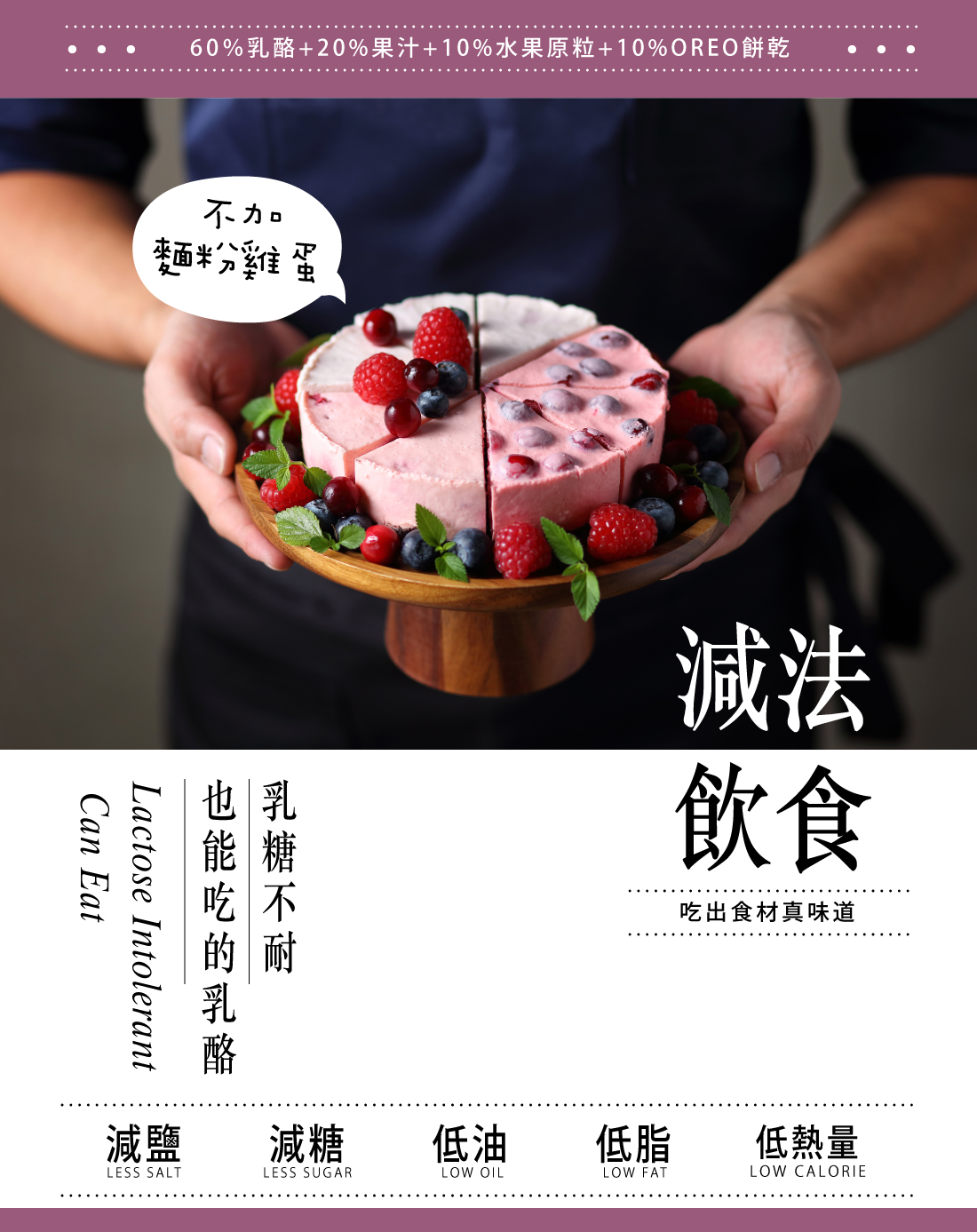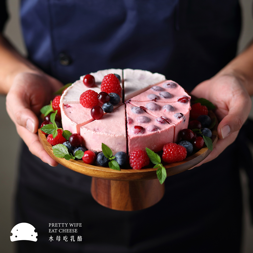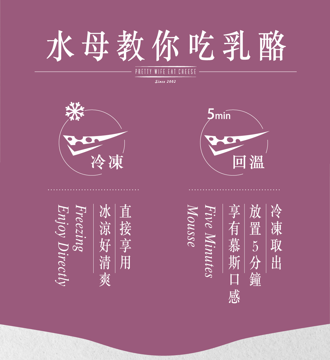 生乳酪是水母吃乳酪的清爽系列,透過乳酪與新鮮果汁調和,無烘烤且無蛋無麵粉,乳酪含量達60%,冷凍吃起來就像優格冰;稍微回溫後如果泥慕斯。