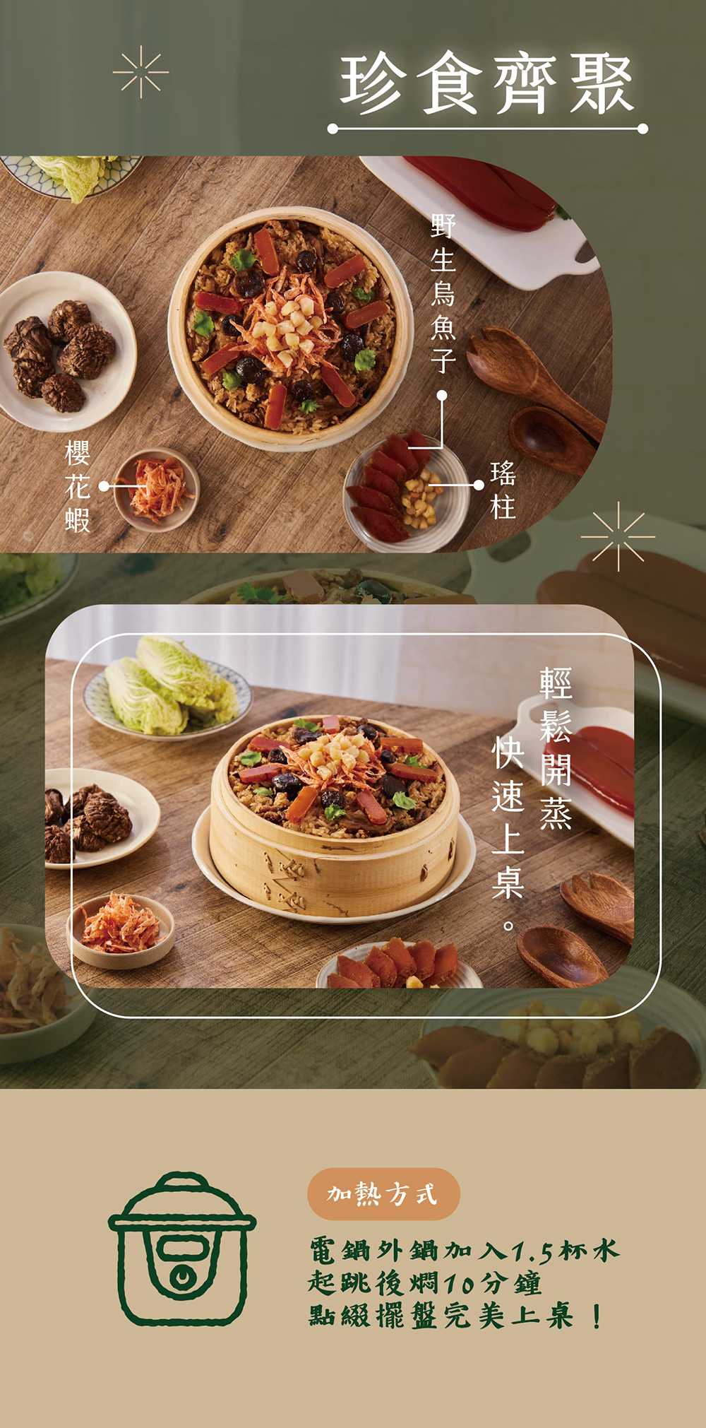 嚴選古法日曬野生烏金與鹹香米糕的軟糯完美融合。