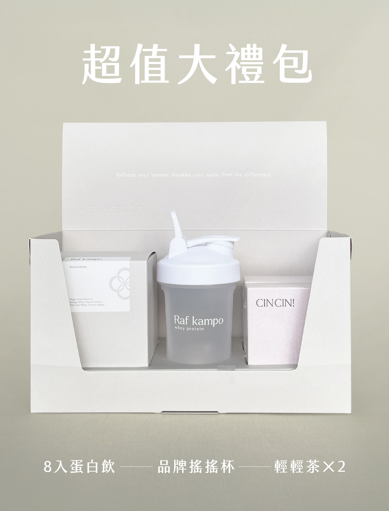 Raf kampo 超值大禮包(8入蛋白飲+2盒水光白桃+品牌搖搖杯)