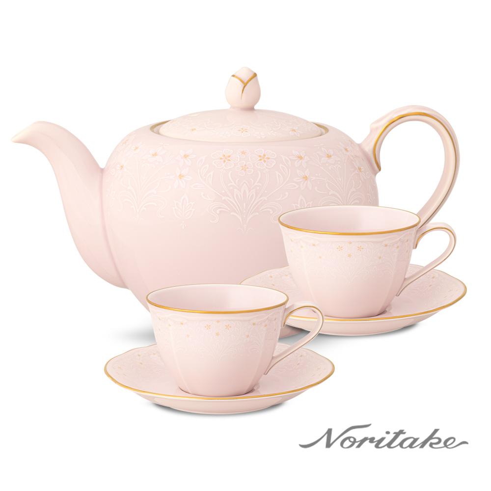 新芽-下午茶杯碟5件組_粉茶壺+粉咖啡對杯(禮盒組)(可微波)