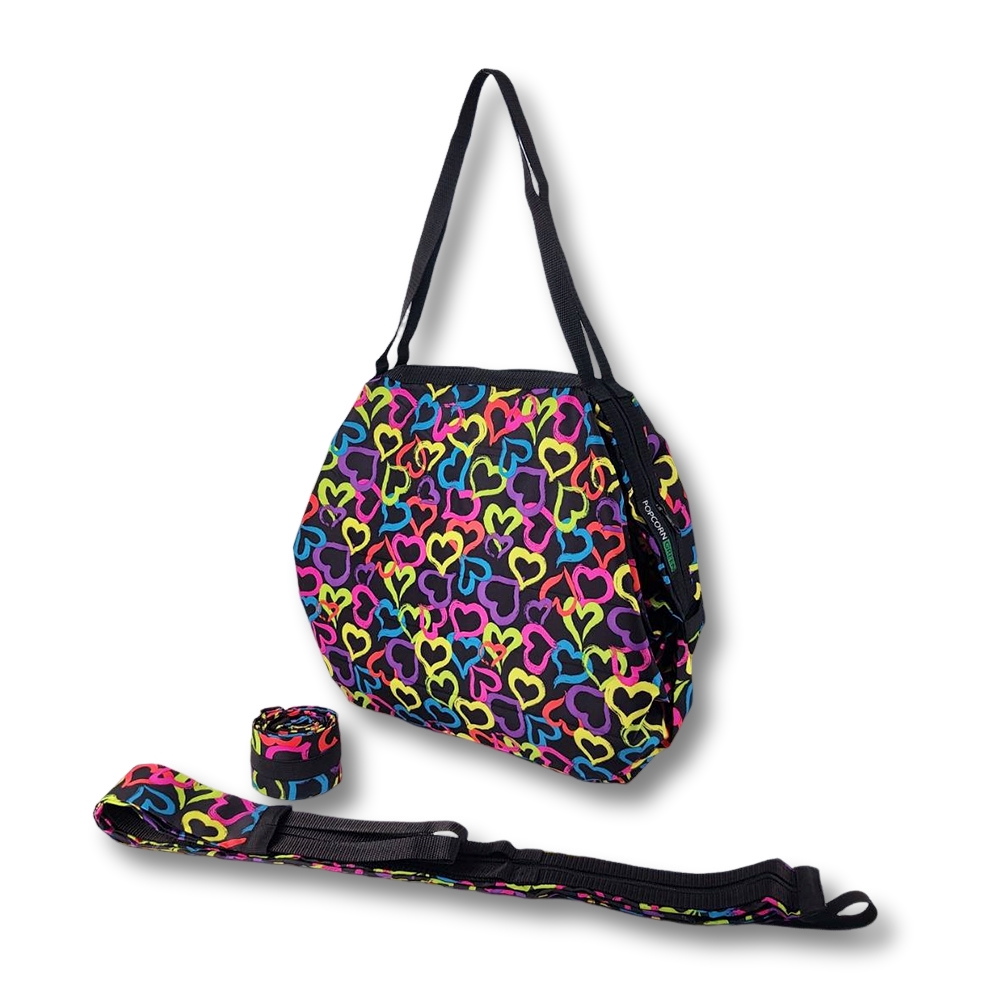POPCORNGREEN(超纖高丹)摺疊隨身包 彩色愛心黑(L)
