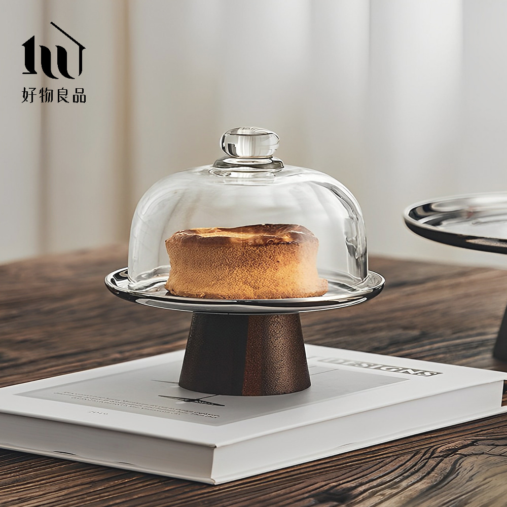 鏡面原木款_高質感玻璃罩高腳蛋糕盤飾品托盤
