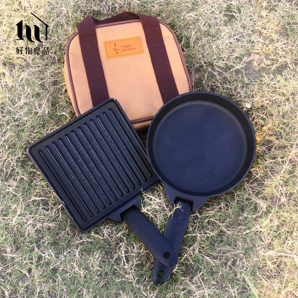 露營專用折疊鑄鐵煎鍋盤套二入組(直徑15公分)露營烤盤 小型煎盤 戶外煎盤