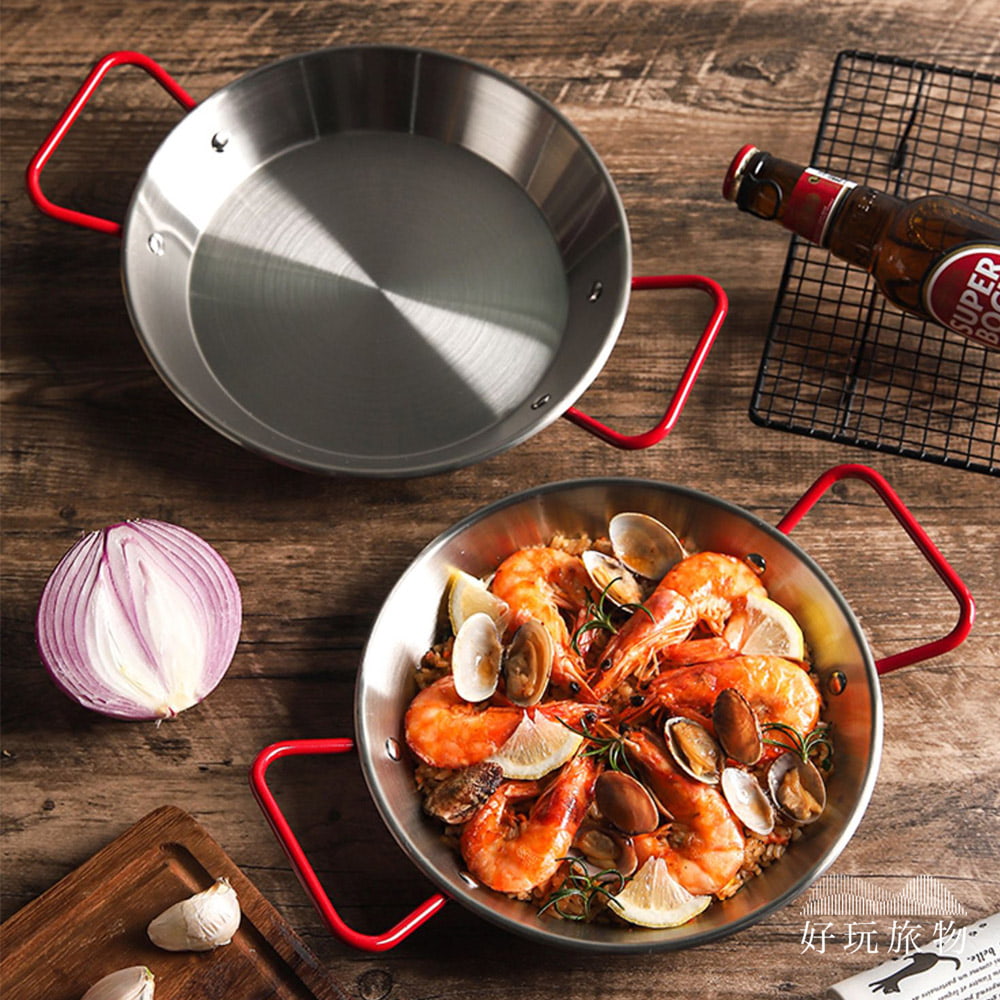紅色雙耳把手不鏽鋼平底鍋 露營烤盤 露營煎鍋