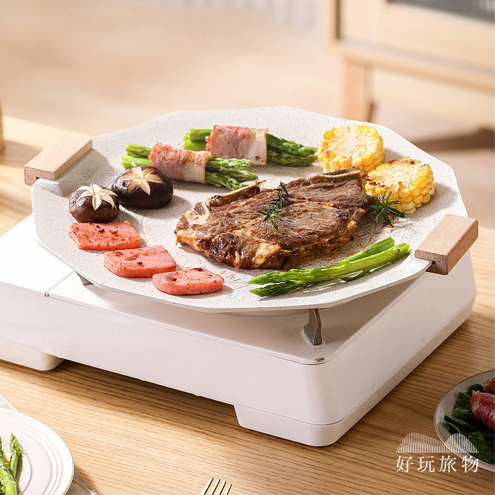 全新韓國木把手麥飯石不沾鍋烤盤(附收納袋)烤肉盤 露營烤盤 不沾鍋烤盤 燒烤盤 燒肉 煎盤