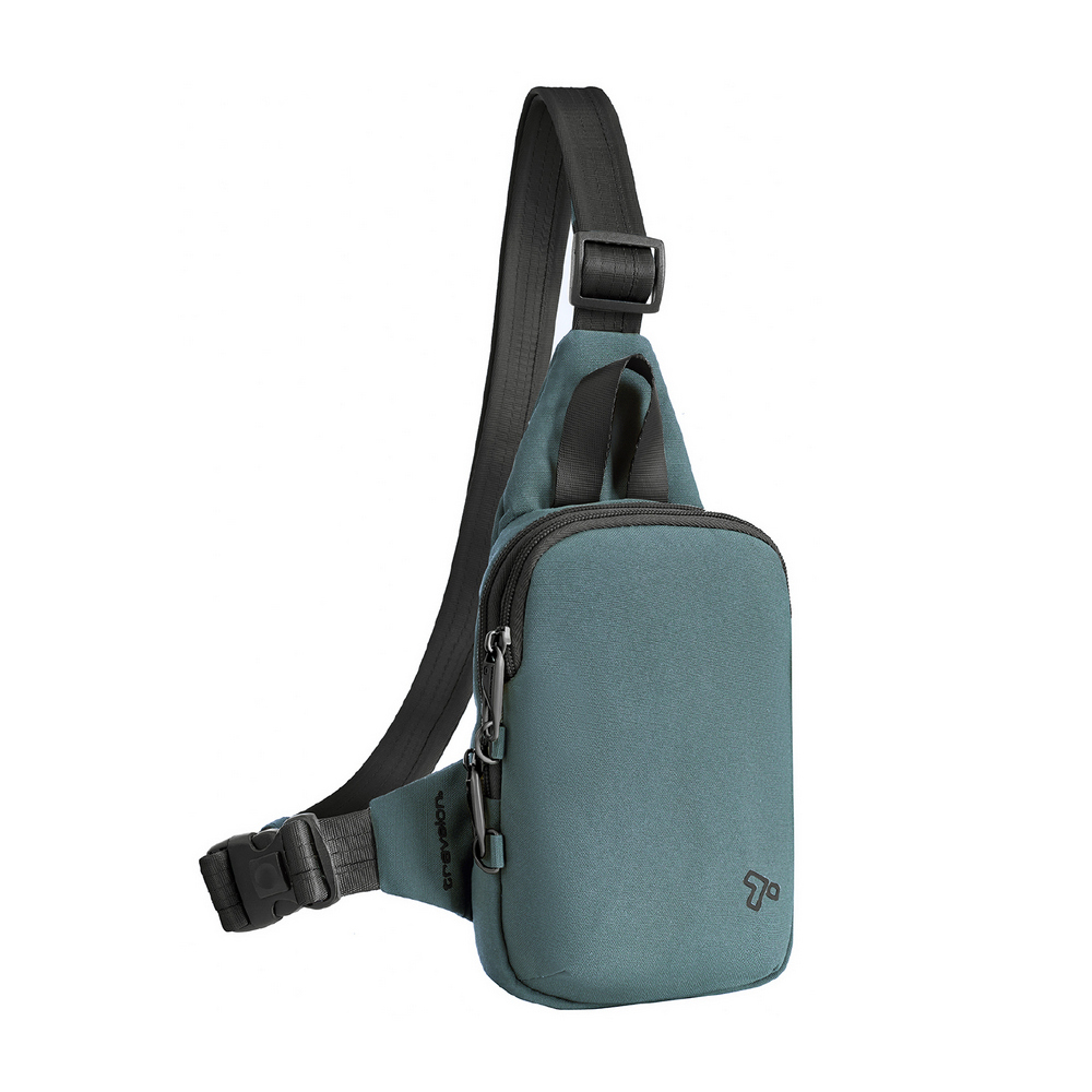 美國 TRAVELON - Heritage帆布3層輕便防盜斜背包(牛仔綠) / 側背包 斜肩包 小包 背帶包 防割防搶
