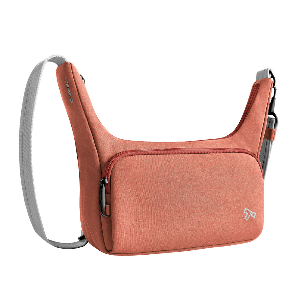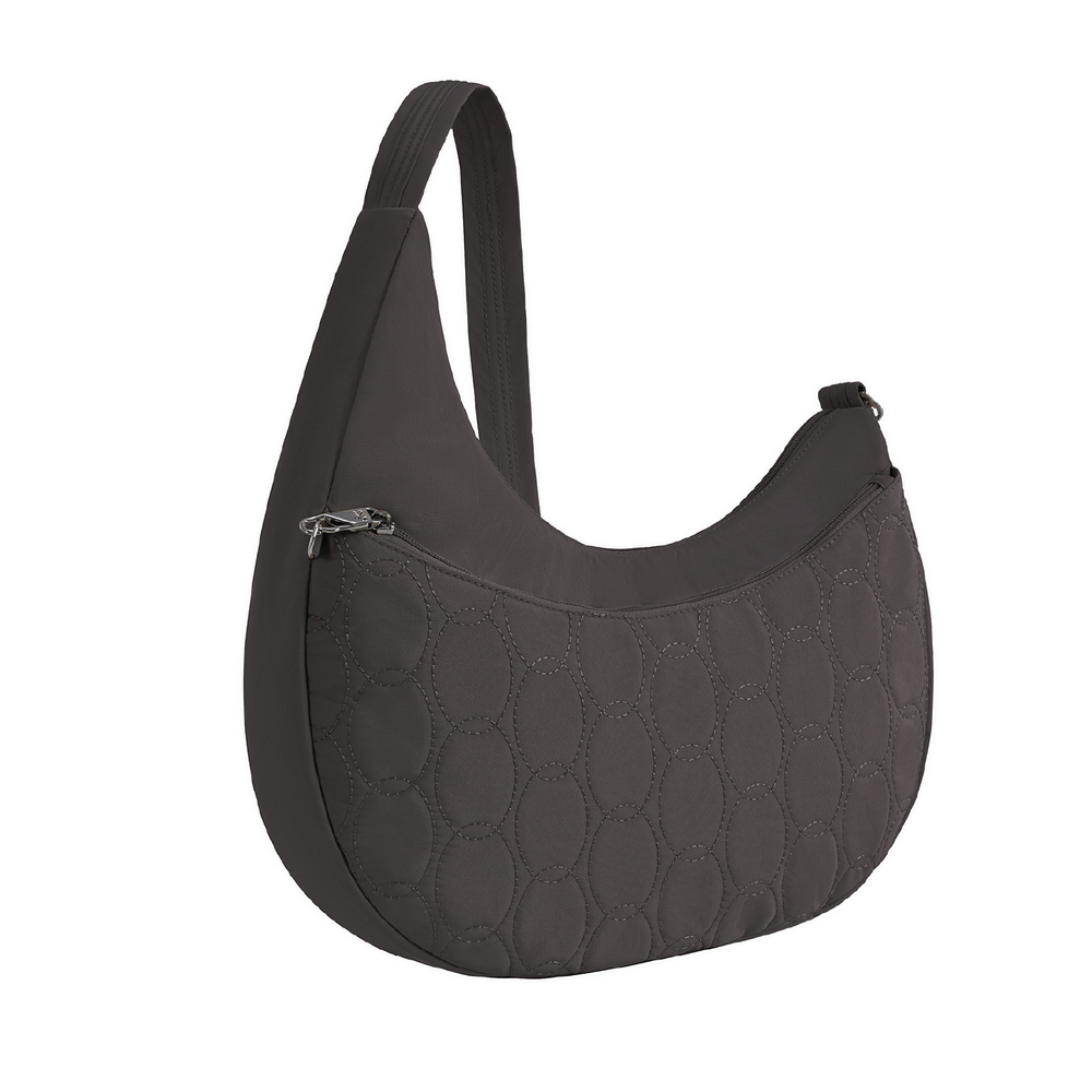 美國 TRAVELON - Runways 3層防盜斜背彎月包(月影灰) / RFID防盜包 斜背包 側背包 防割防搶