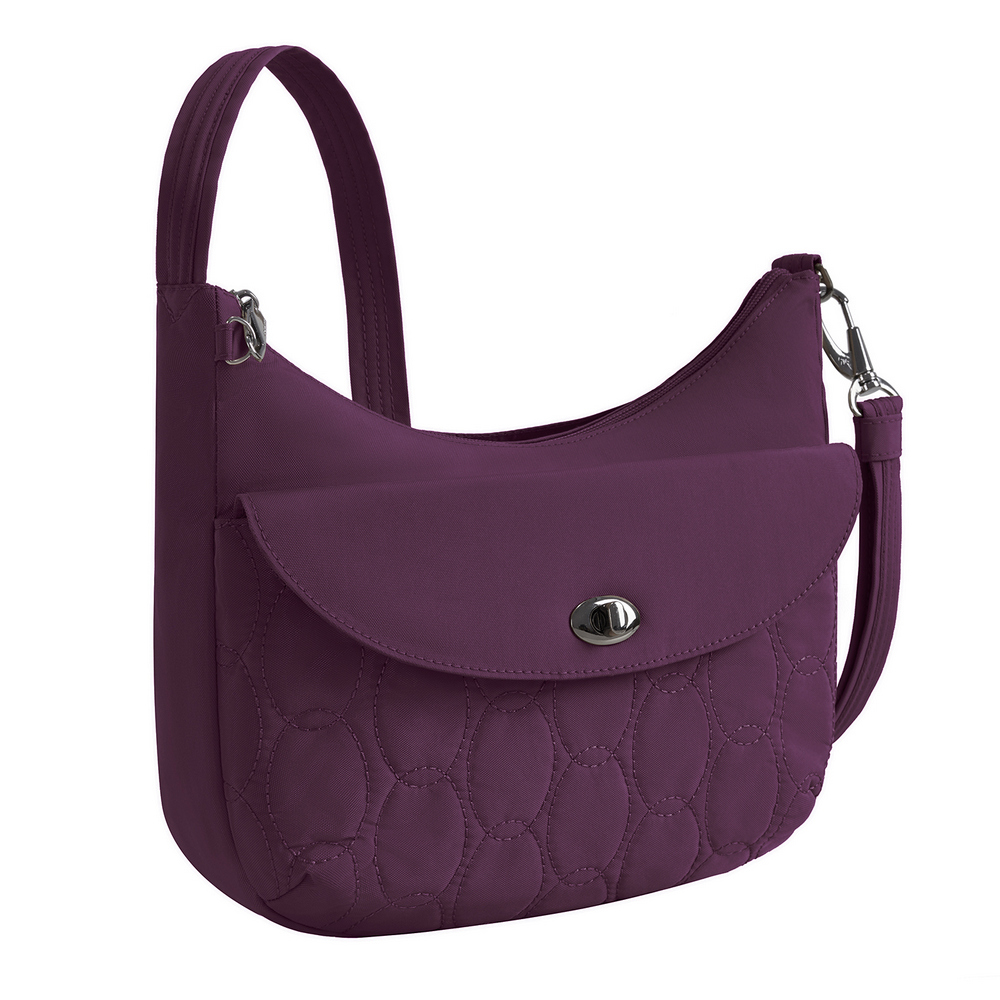 美國 TRAVELON - Runways 3層防盜斜背彎月包(黑莓紫) / RFID防盜包 斜背包 側背包 防割防搶