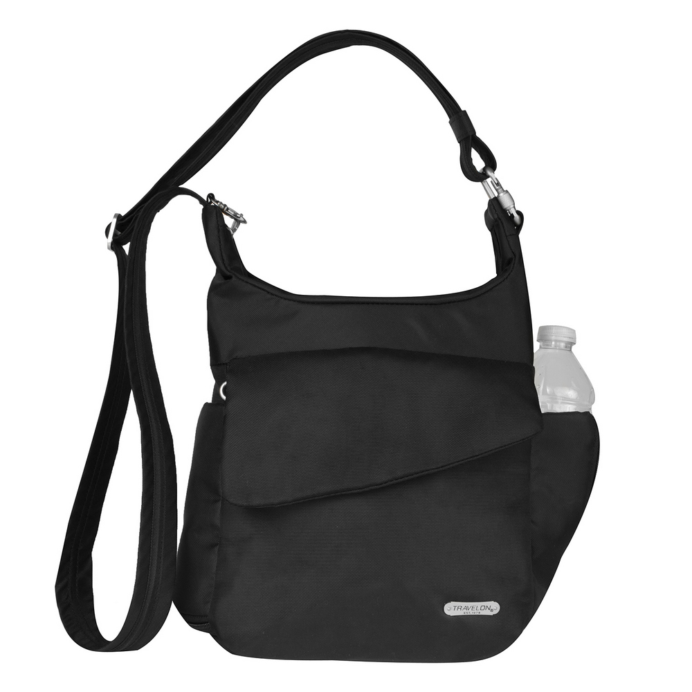 美國 TRAVELON - Runways 3層防盜斜背彎月包(墨黑) / RFID防盜包 斜背包 側背包 防割防搶