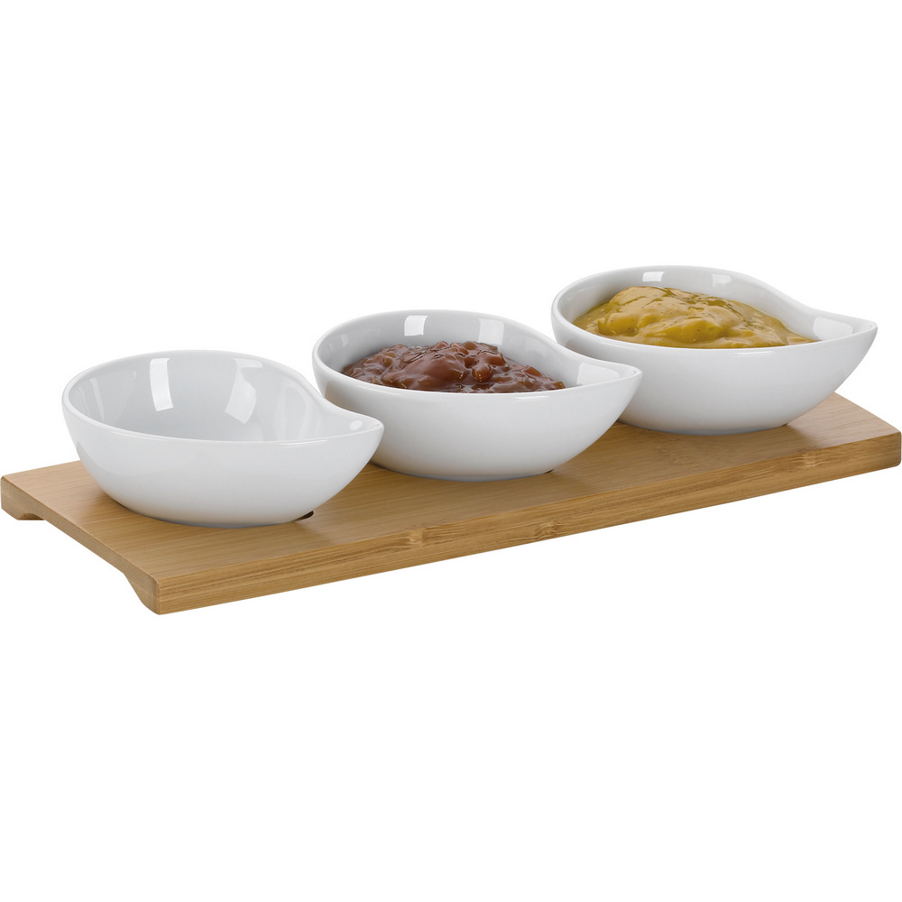 德國 KELA - 白瓷醬料碟3入+托盤 / 醬碟 醬油碟 小碟子 小菜碟