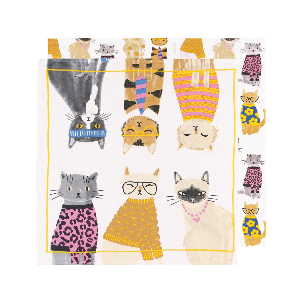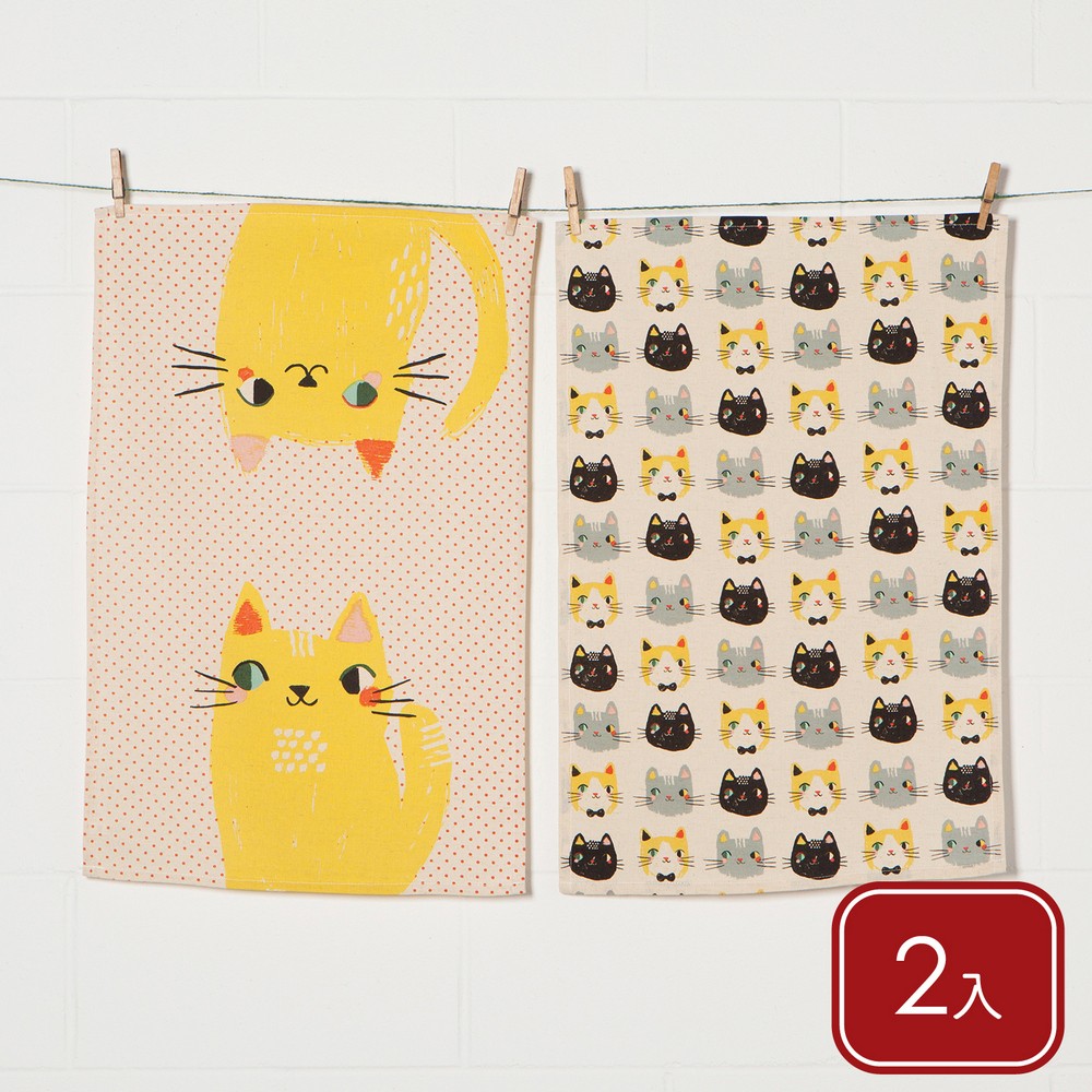 加拿大 danica studio - 擦拭布2入(插畫貓71x45cm) / 廚房抹布 清潔布 擦拭布 茶巾