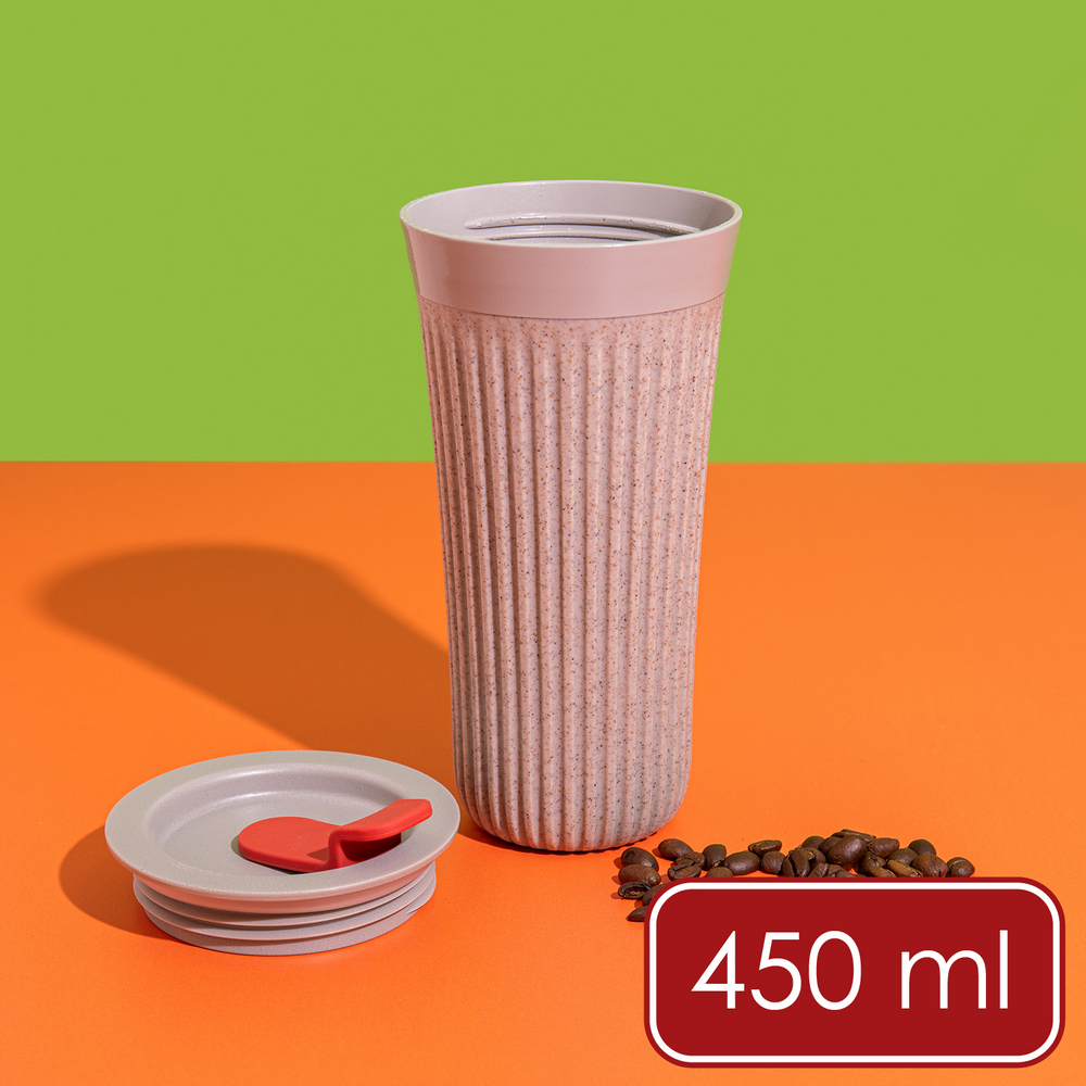 英國 La Cafetiere - TheBeanie環保隨行杯(紅蓋迷霧灰450ml) / 可微波杯 隨身咖啡杯 隨身水壺 直飲杯 環保杯