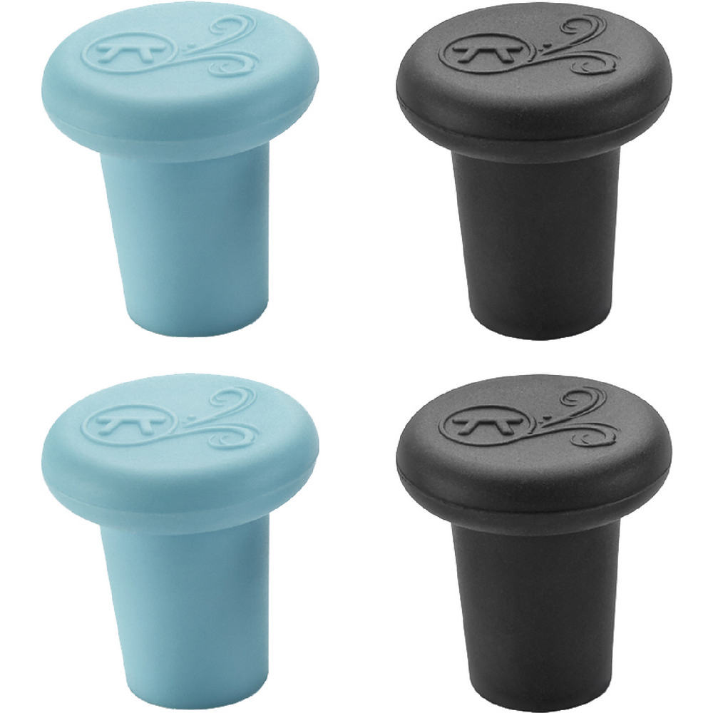 美國 OUTSET - 矽膠酒瓶塞4入(藍灰) / 紅酒塞 葡萄酒塞