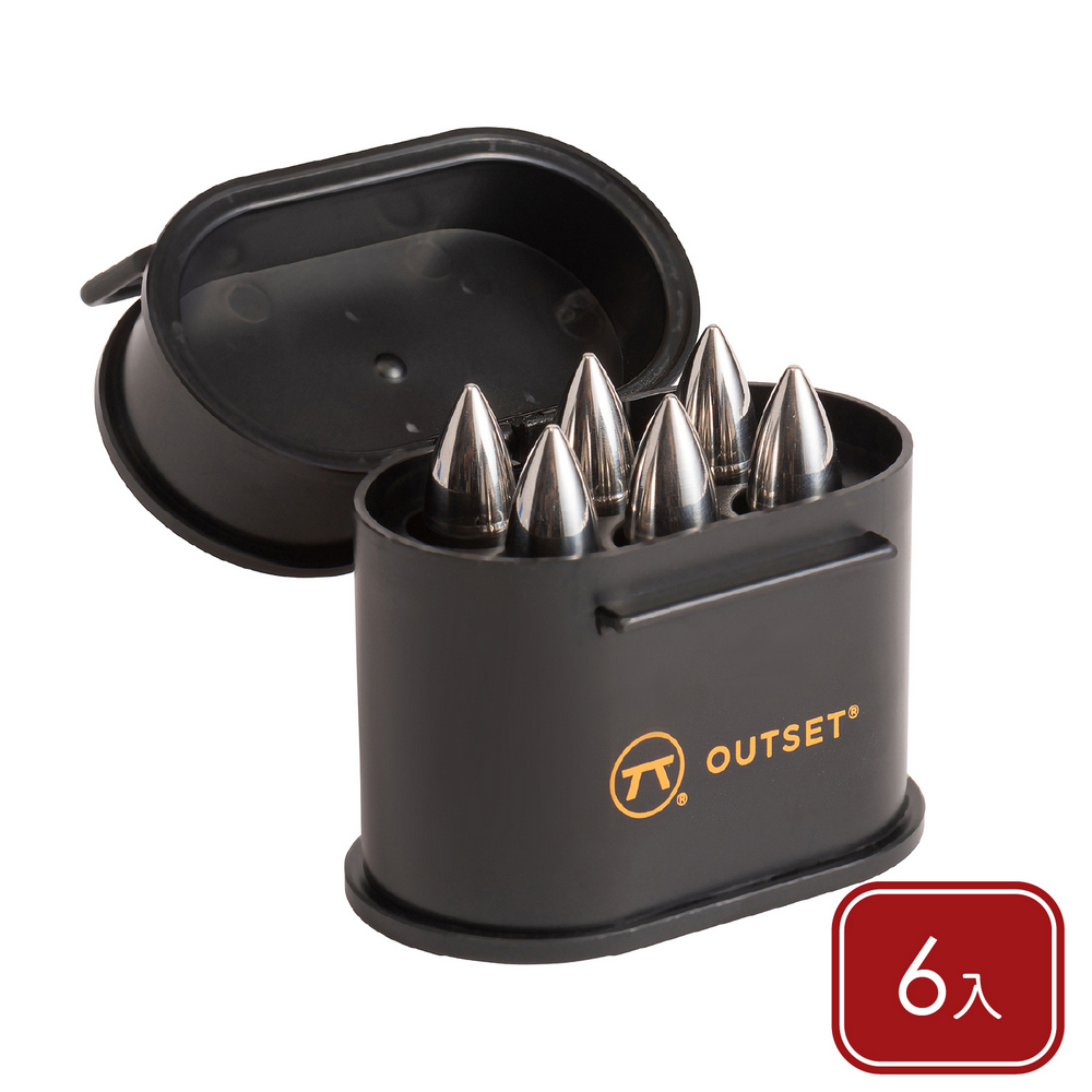 美國 OUTSET - 附盒不鏽鋼威士忌冰石6入(彈型) / 冰磚 冰酒石
