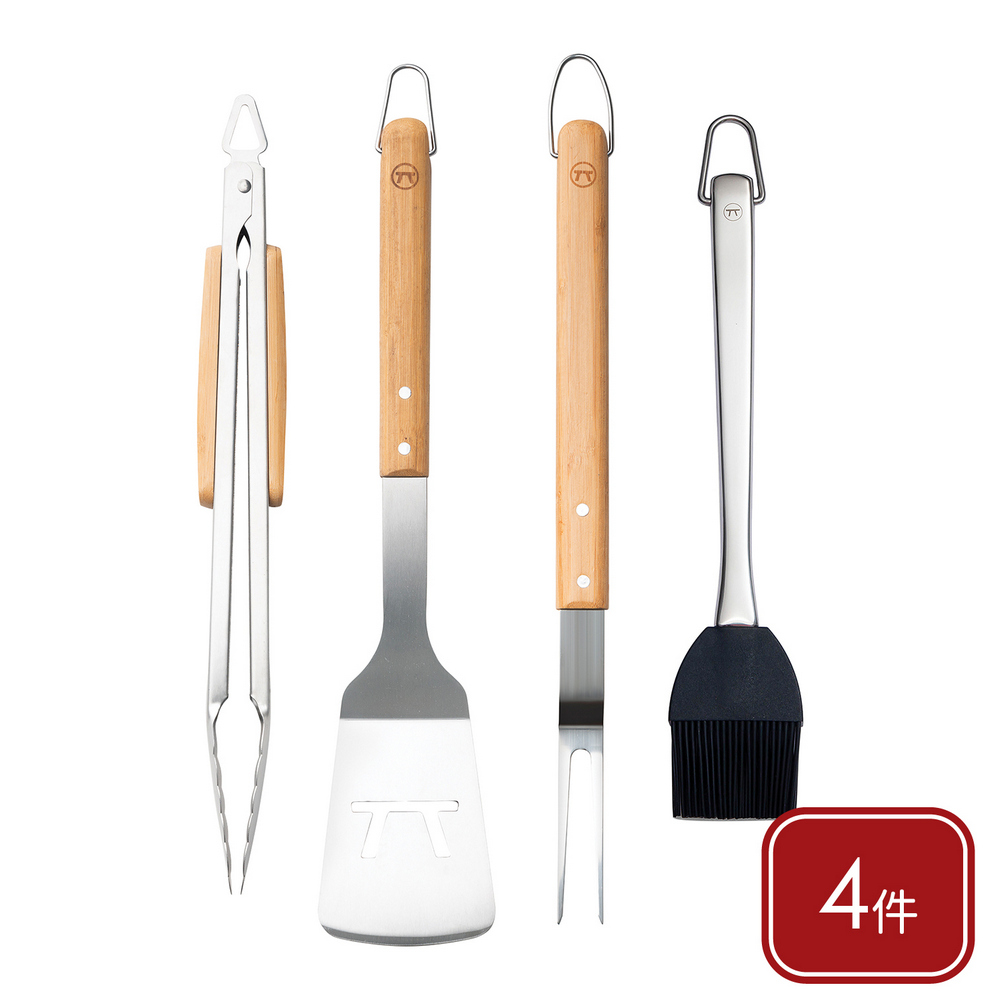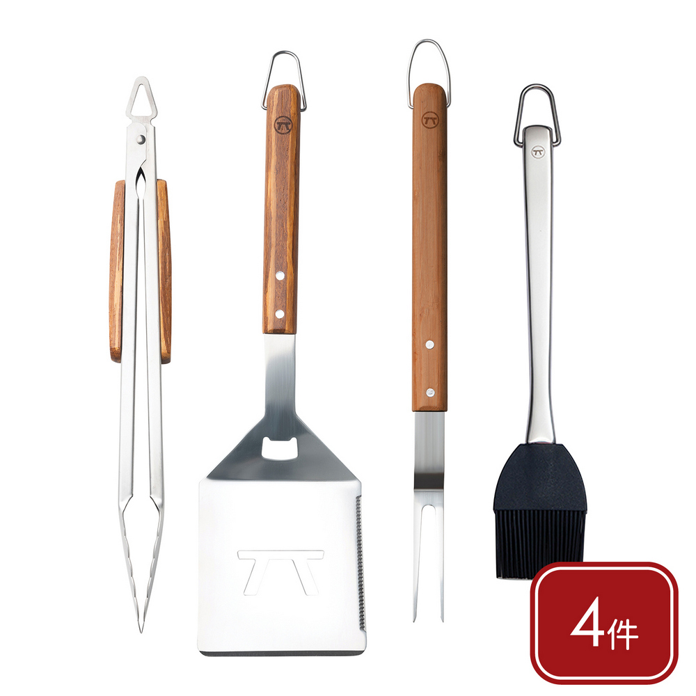 美國 OUTSET - Verde不鏽鋼烤肉用具4件(典雅竹) / 燒烤用具組 濾油鏟 烤肉夾 烤肉叉 醬料刷