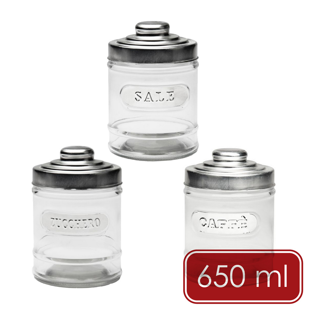 義大利 EXCELSA - Trix玻璃收納罐3入(義式復古650ml) / 收納瓶 保鮮罐 咖啡罐 零食罐 儲物罐
