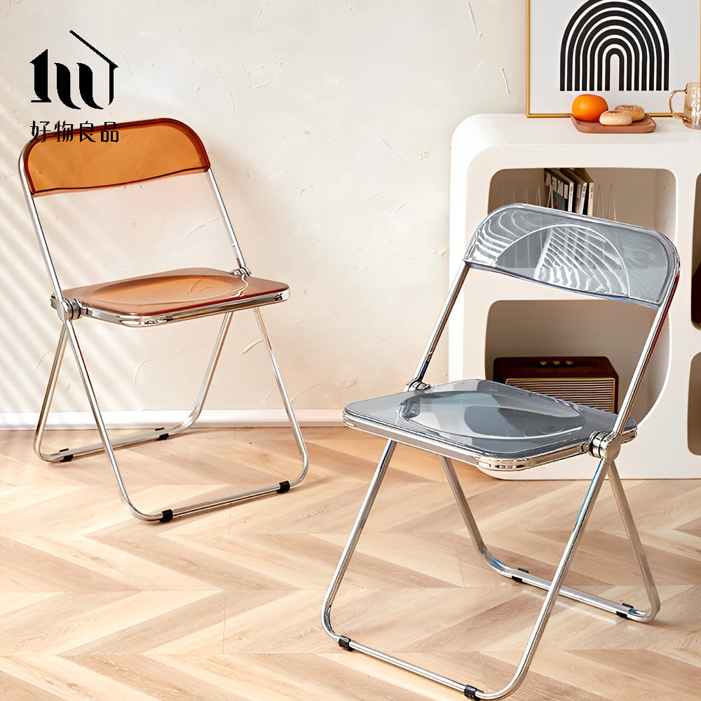 嚴選高品質鏡面電鍍高承重透明折疊餐椅