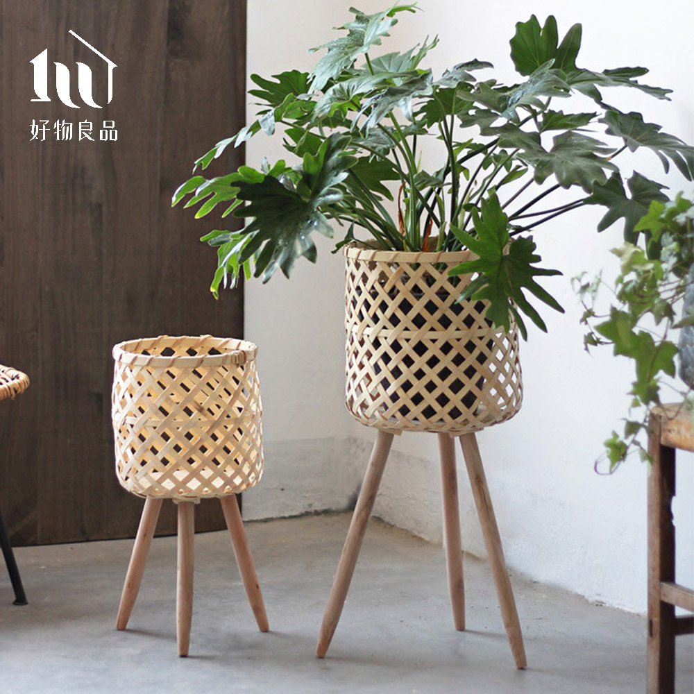 日本手工藤編高架落地式植栽花籃置物籃