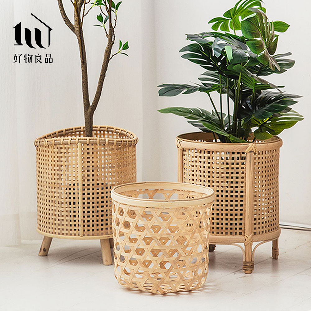 質樸復古手工藤編落地式植栽花籃置物籃