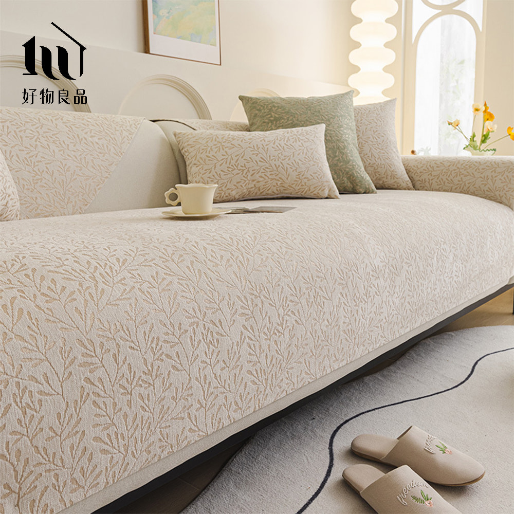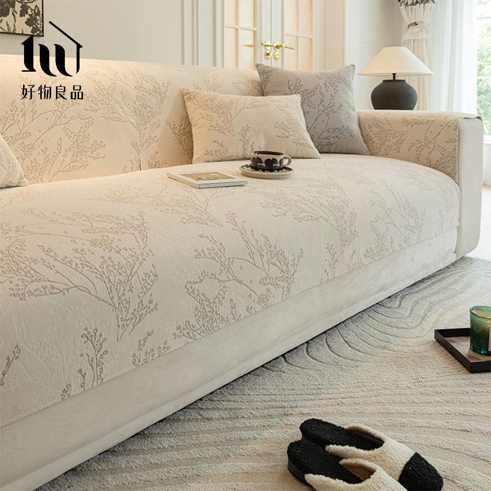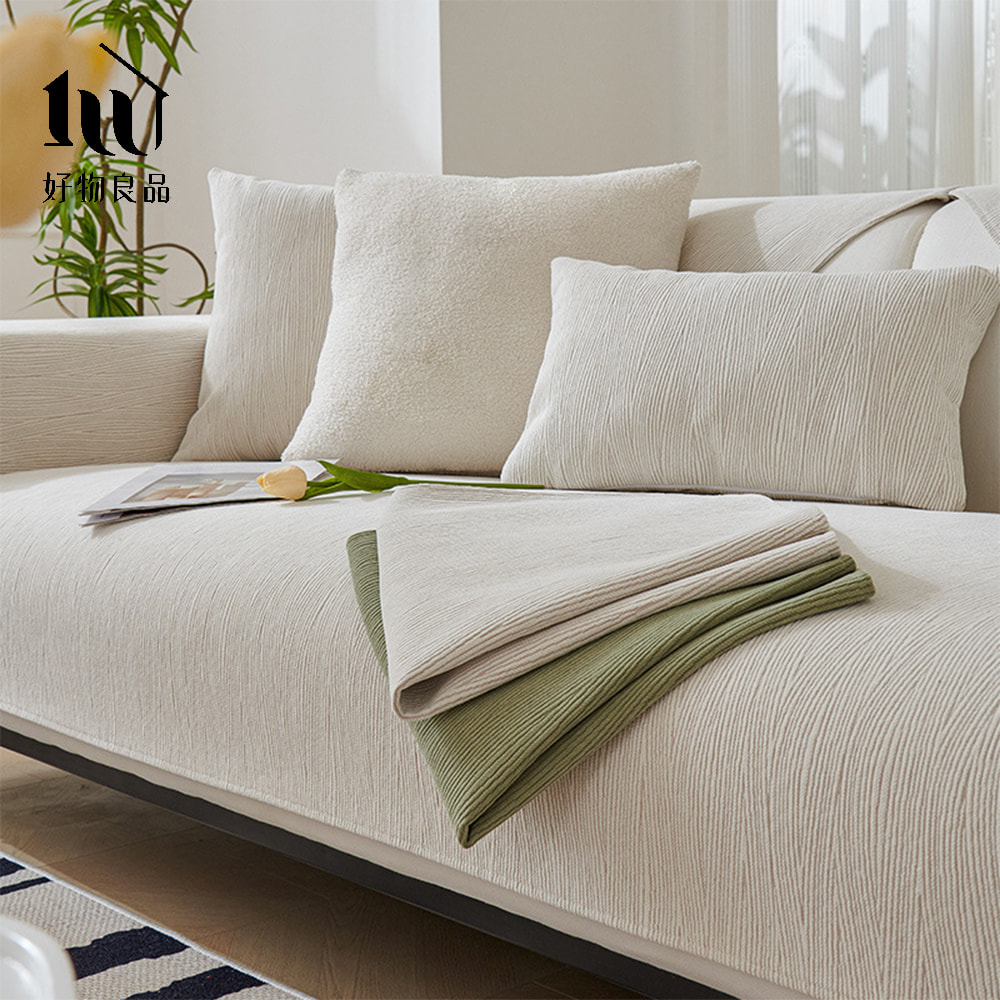 四季通用厚感雪尼爾親膚系列《日式米白》立體防滑刺繡沙發墊組合