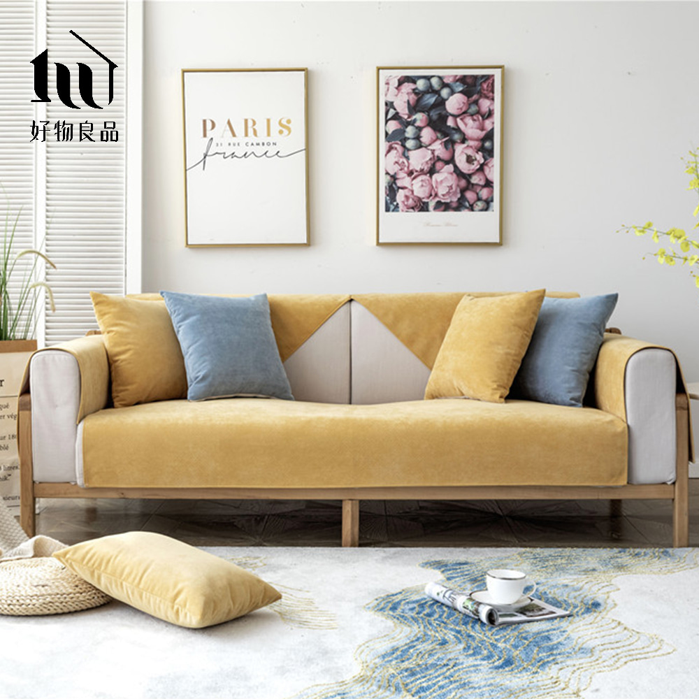 防貓抓系列《茉莉黃》四季通用雪尼爾沙發墊組合