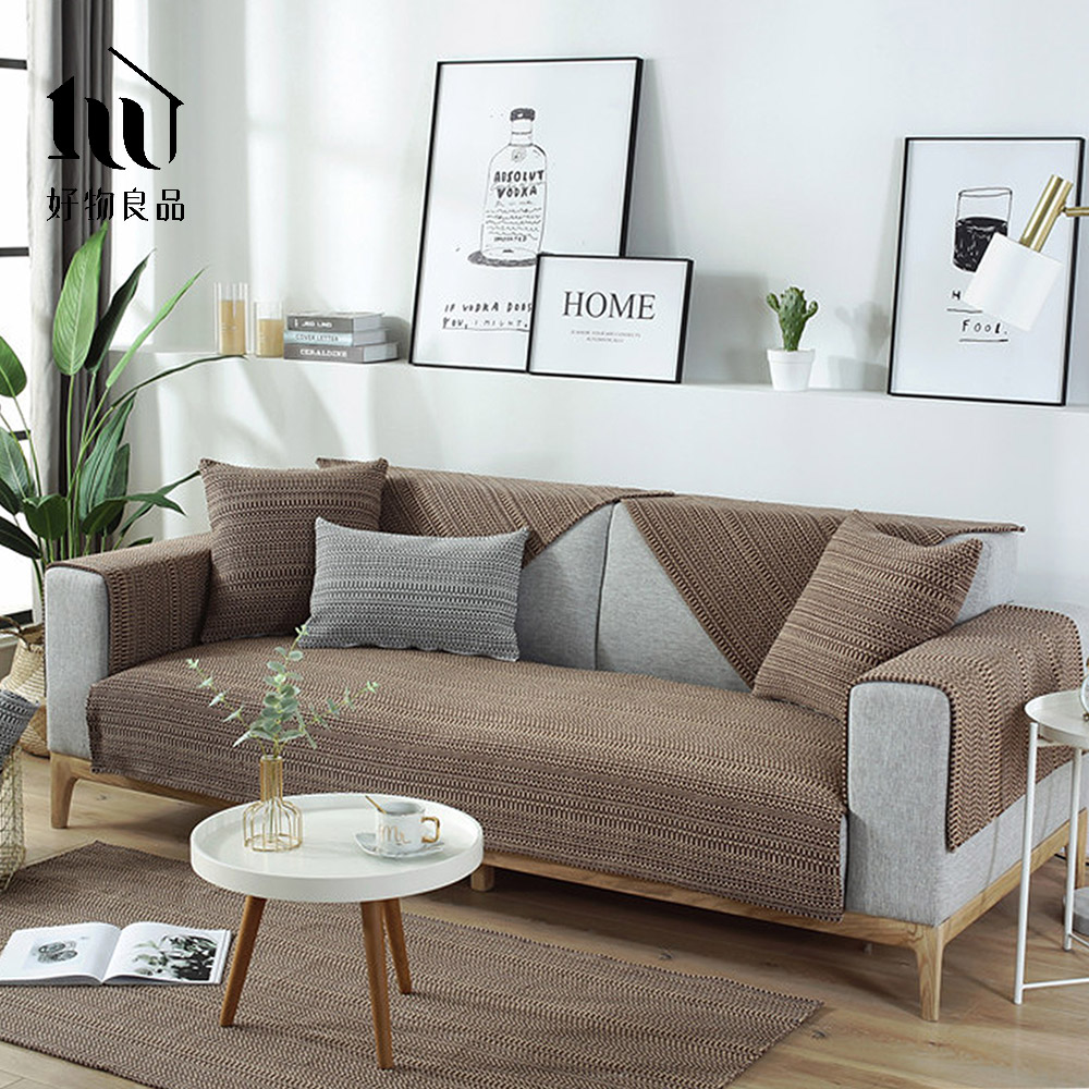 《拿鐵編織》日系簡約棉麻編織紋防滑防貓抓沙發墊組合