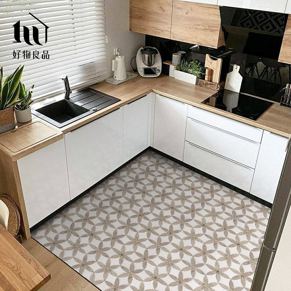 《羅馬花磚》設計款頂級可剪裁防油防水減壓皮革廚房地墊
