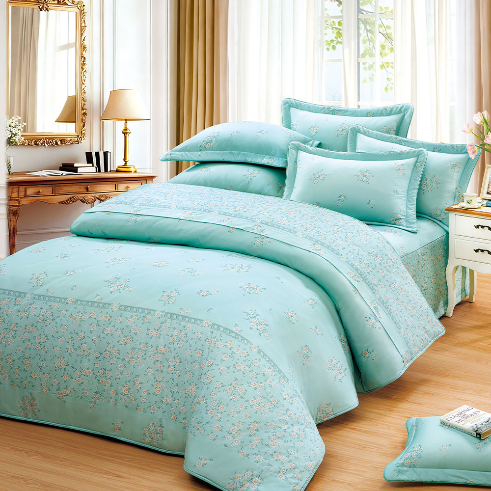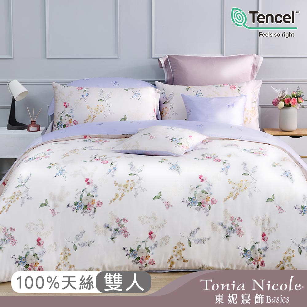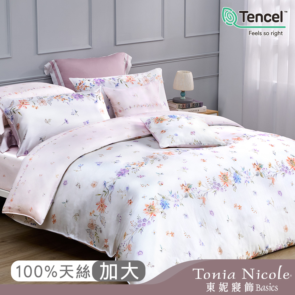 【DUYAN 竹漾】40支100%天絲雙人加大四件式鋪棉兩用被床包組 / 花庭清語 台灣製