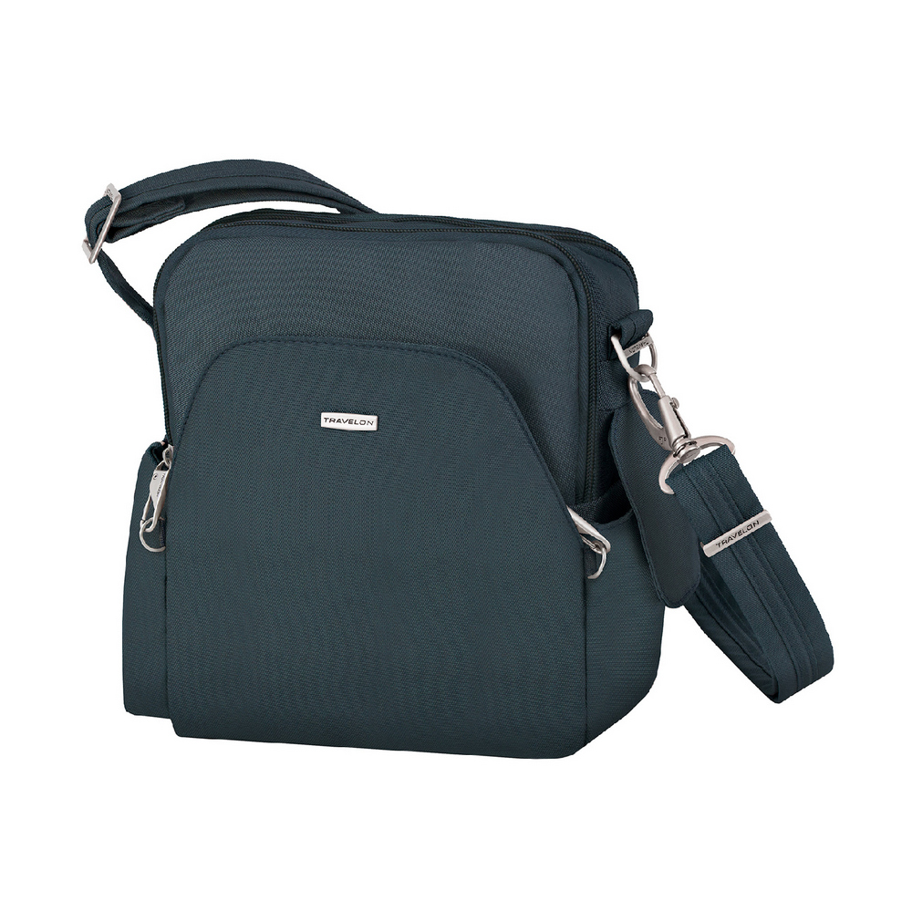美國 TRAVELON - Runways 3層防盜斜背彎月包(海軍藍) / RFID防盜包 斜背包 側背包 防割防搶