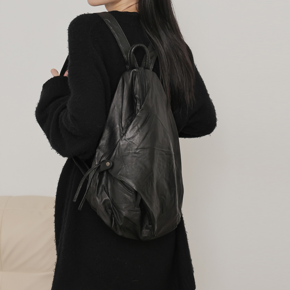 supportingrole 輕量羊皮立體拉鍊結構極簡後背包 黑