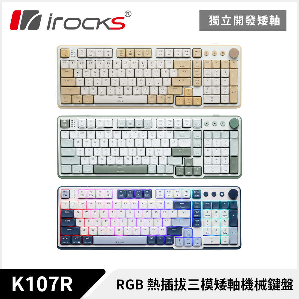 irocks K107R RGB 熱插拔三模矮軸無線機械鍵盤 三色任選