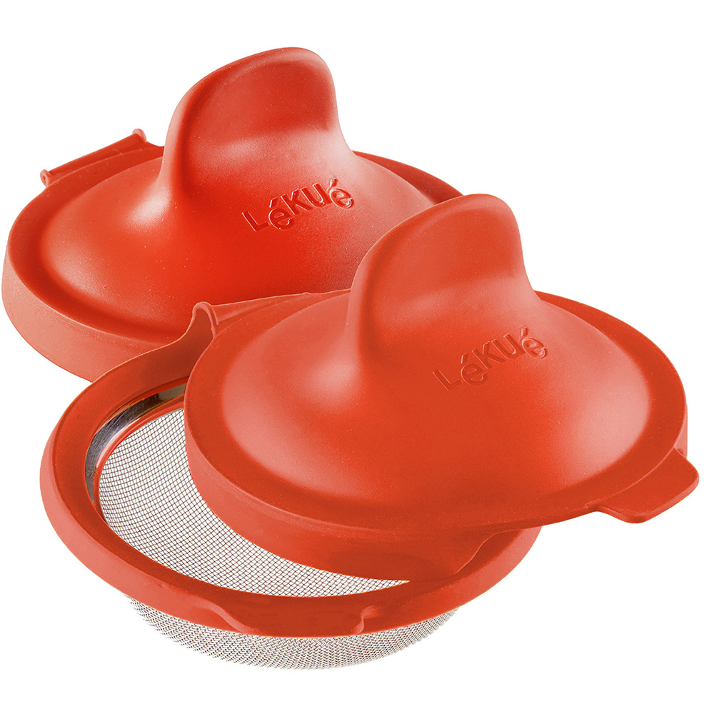 西班牙 LEKUE - 附濾盤微波蒸煮調理鍋(紅1L) / 白金矽膠 微波料理 懶人料理